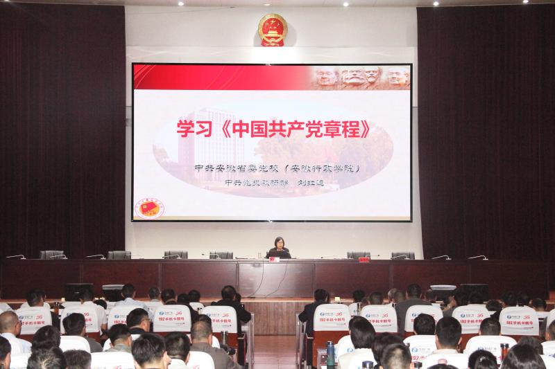 刘红运教授从“党章的发展历程及地位和作用”、“党章的体例结构和主要内容”、“严格遵守党章,增强党员意识”等三个方面做了详细阐述。她指出,党章是党的历史发展的权威记载、是指引前进方向的一面旗帜、是规范管党治国的根本大法,党员干部要坚持以习近平新时代中国特色社会主义思想为指导,牢记嘱托,感恩奋进,以优良作风保障高质量发展。