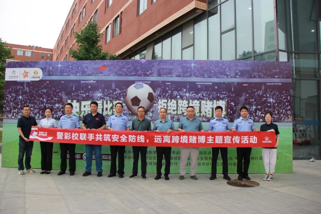 6月20日宿州启动2025年“拒绝跨境赌博”主题宣传月活动宿州市公安局人民银行宿州市分行徽商银行宿州分行等8家单位有关负责人以及宿州学院师生代表共200余人参加活动此次活动以“宣讲+互动”“倡议+签名”的创新形式将防范跨境赌博知识、反诈防骗技巧及合法购彩理念融入生动案例通过设置知识抢答趣味游戏、倡议签名等环节师生们参与热情高涨在互动中提升了拒赌反诈意识 宿州市公安局 以“世俱杯”赛事为切入点结合近年来破获的典型案例系统揭露了跨境赌博“虚假投注”“高额返利”等犯罪套路和参与跨境赌博的严重危害传授了防范跨境赌博的实用技巧同时聚焦电信网络诈骗新动向解析了“中奖通知”“内幕消息”等诈骗话术及防范诈骗技巧 宿州市体彩中心 紧扣“世俱杯”体育热点将责任彩票理念与拒赌反诈宣传有机融合 人民银行宿州分行 徽商银行宿州分行等单位 充分发挥资金监测账号安全保护等领域专业优势通过短视频等形式传授识别赌诈陷阱防范金融诈骗方法 参加活动的师生纷纷表示不仅认清了跨境赌博的严重危害更增强了自身防范赌诈的安全意识 下一步全市公安机关将持续开展互动性强参与度高的宣传教育活动营造“拒绝跨境赌博”的浓厚氛围加强各项防控治理筑牢全民拒赌防线
