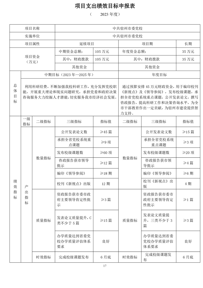 中共宿州市委党校2023年部门预算