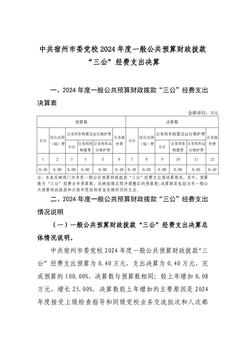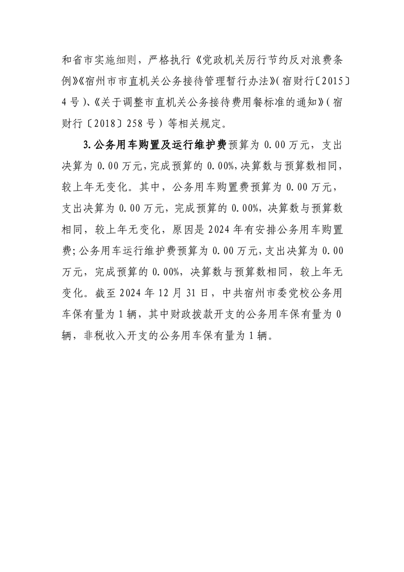 中共宿州市委党校2024年度一般公共预算财政拨款“三公”经费支出决算